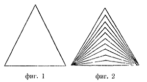 Колкото повече ребрата на този триъгълник се намаляват, човек става по-голям материалист (фиг. 2). Като се намаляват ребрата, най-после те се сливат с основата на триъгълника и се получава права линия. Щом се превърне в права линия, човек умира. Като разбере, че материализмът не е истинският живот, но движение само по права линия, той ще се върне отново в живота, да изучи проявите на Бога и на природата.