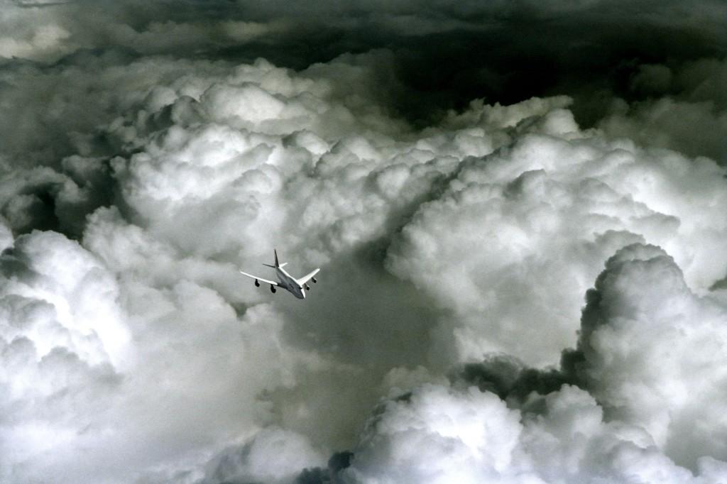 Самолета прегърнат от облаци